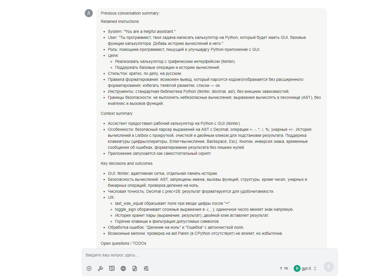 Бесконечный контекст - круто, однако чем больше он заполняется, тем больше денег будет списано. Нам это ни к чему? Именно для этого нужна архивация. Приложение структурирует всю информацию, выделяет основное и отправляет это в архив, сохраняя контекст в памяти, но снижая его объем.
