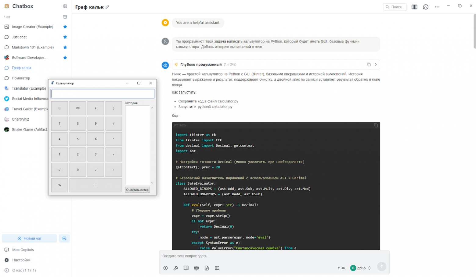 Лично для меня Chatbox - действительно удобный клиент для чат-ботов. Убранное ограничение по контексту позволяет работать долгое время и не сталкиваться с проблемами потери памяти. В то же время архив, который выделяет ключевые вещи в вашей беседе, позволяет еще и сократить траты на большие диалоги.