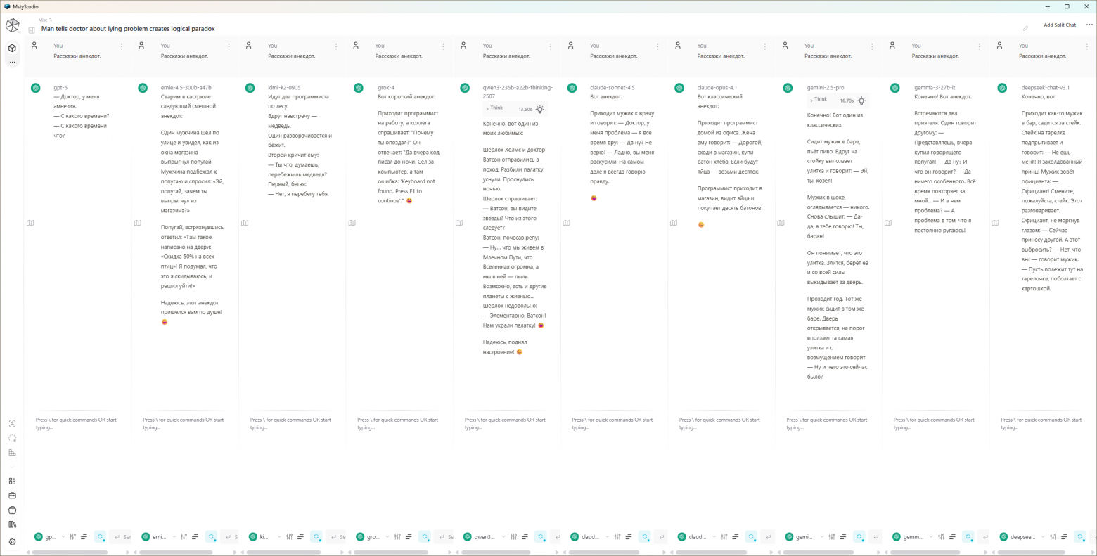 Формально ограничений почти нет: Msty способен показать столько сплитов, сколько вы способны вместить на монитор. На ультрашириках помещается около десяти одновременно. Остальные просто «уходят за кадр», но не пропадают.