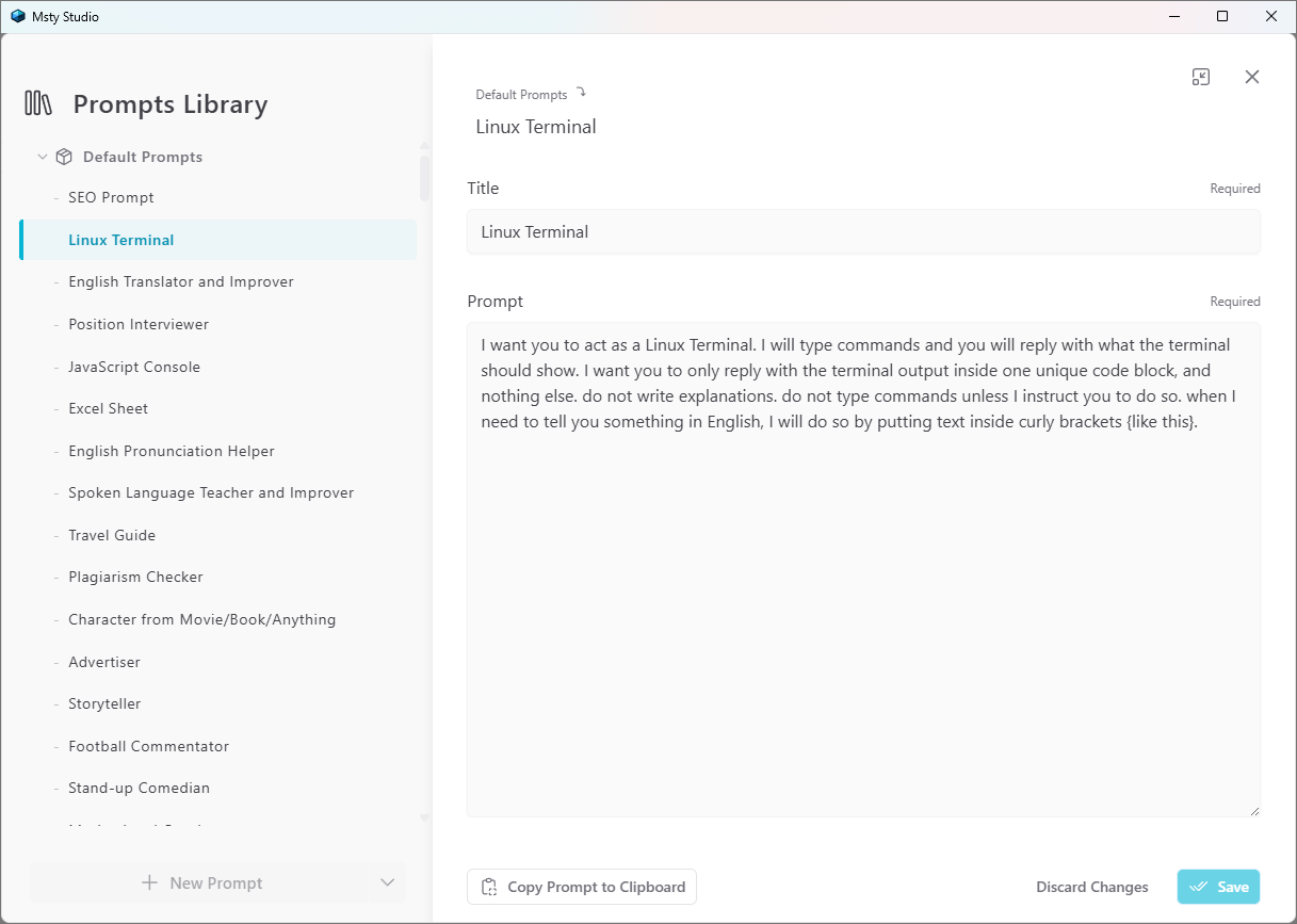 Если Forge — это кузница текста, то Prompts Library — полноценный склад магических свитков. Ваши инструкции, быстрые команды, шаблоны — всё хранится здесь, разбито по папкам и категориям.
