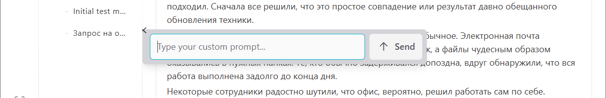 Возможность задать системный промпт, который будет влиять на всё редактирование и генерацию. Он комбинируется с остальными командами.
