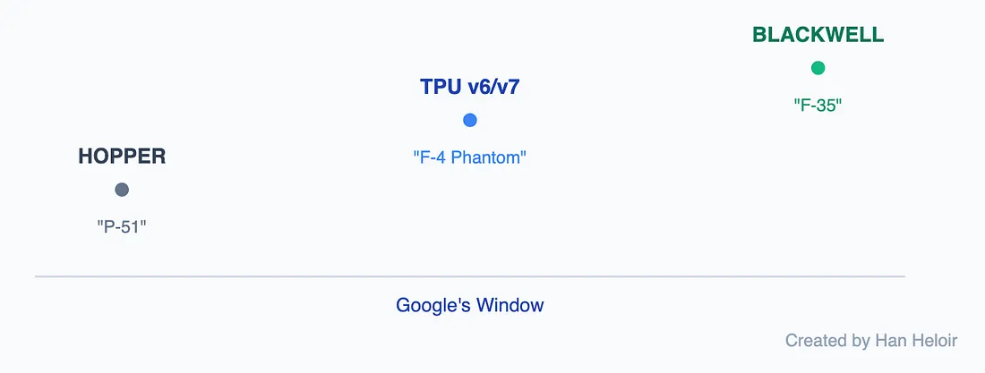 Преимущество Google: тайминг и вертикальная интеграция. Пока Blackwell буксовал, Google обучал на TPU V6 и V7. В полупроводниковом времени, если Hopper был истребителем P-51 Mustang времен Второй мировой, TPU V6/V7 были F-4 Phantom. Blackwell проектировался как F-35. Но F-35 не имеют значения, когда они не летают.