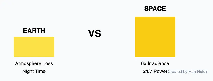 В космосе можно держать спутник на солнце 24 часа в сутки. Солнце на 30% интенсивнее в космосе, чем на поверхности Земли. Правильно расположенный спутник получает в шесть раз больше солнечной энергии, чем лучшая наземная солнечная установка.