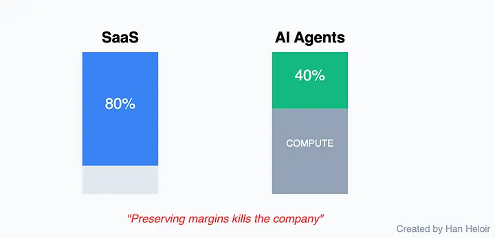 Если вы SaaS-компания, сохраняющая 80% маржи на ИИ-продуктах, вы гарантируете, что ИИ-нативные конкуренты обойдут вас по цене, дадут лучшую ценность и в конечном счете заменят вас.