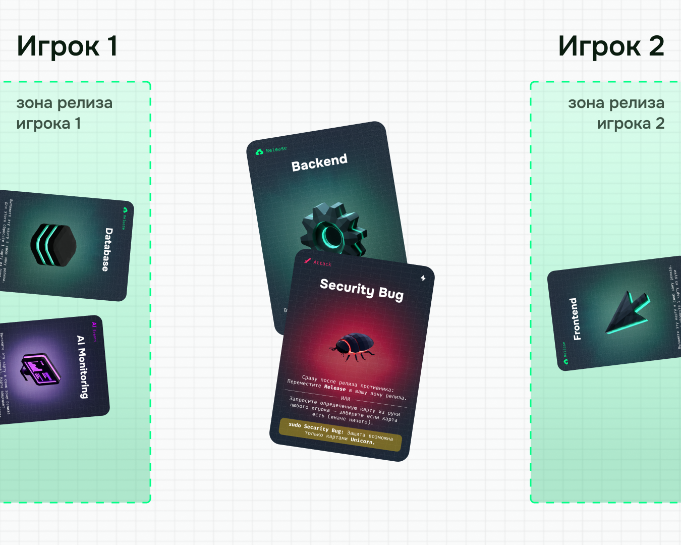 Игрок 2: использует Security Bug, чтобы украсть Backend в свою зону релиза