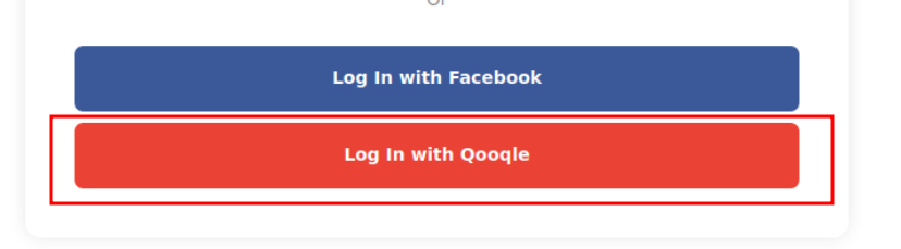 Кроме обычного логина через креды есть еще OAuth. Вариант через Facebook не работает, но вот Qooqle пытется нас перекинуть на qooqle.htb. А что если на там рабочий сервис? Добавляем его в /etc/hostsи следуем на http://qooqle.htb.