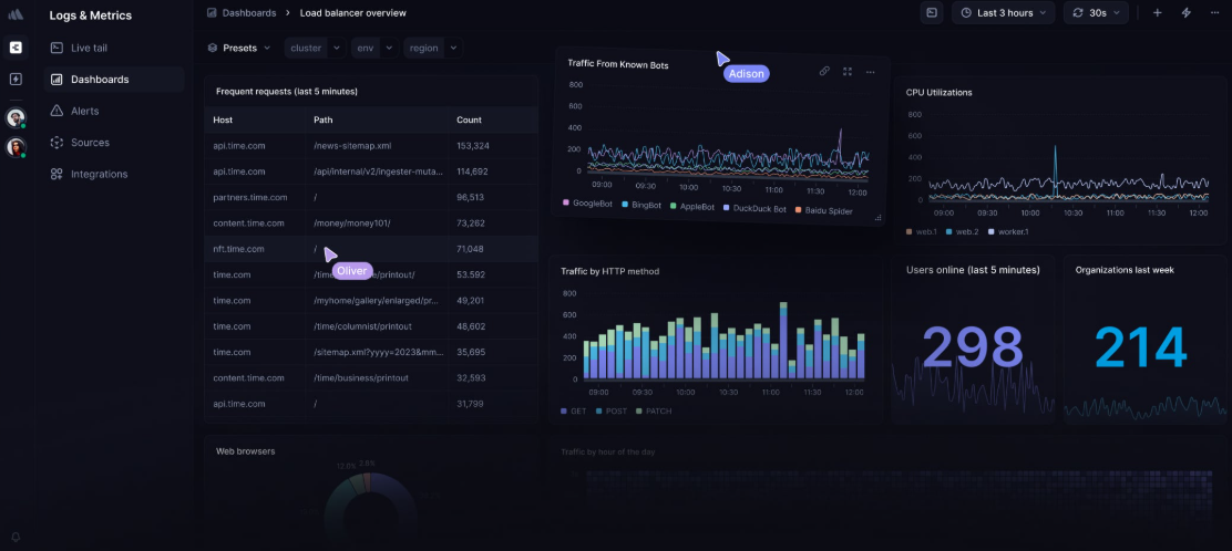 Завершает нашу десятку российская платформа Logtail (не путать с одноимённым зарубежным сервисом). Это сервис для мониторинга и поиска по логам, который собирает метрики с разных источников (серверы, приложения, контейнеры и кластеры) и сохраняет их в структурированном виде благодаря Clickhouse.