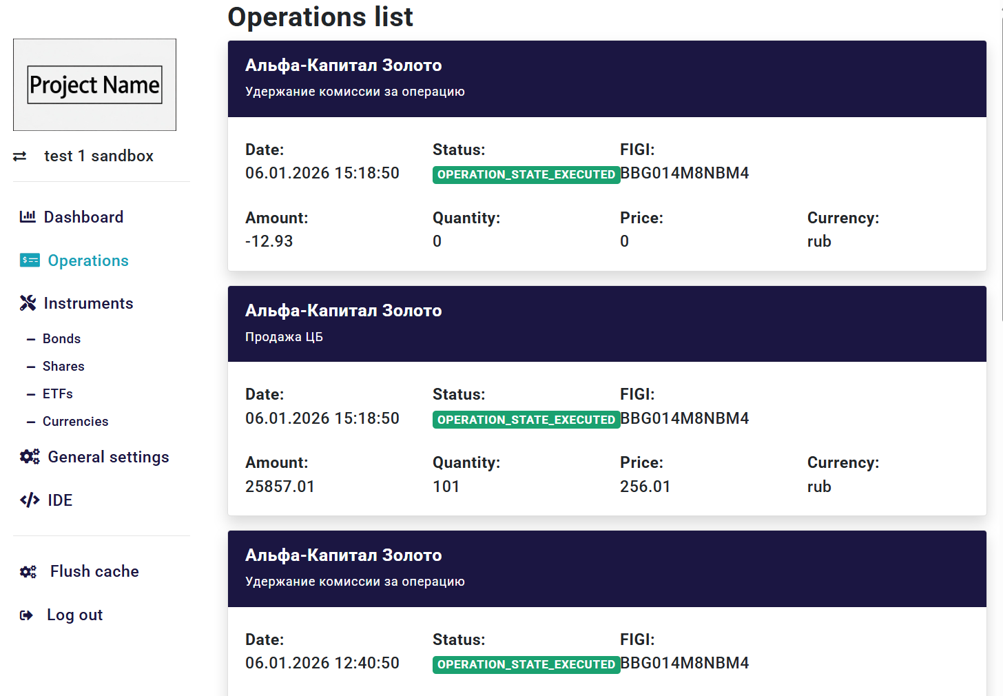 Сервис по работе с API песочницы и с реальными деньгами, в зависимости от выбранного аккаунта
