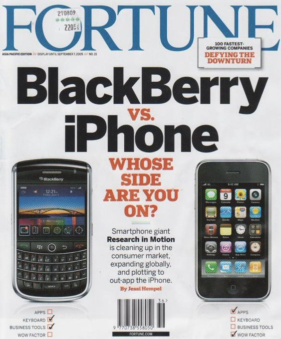 2009: продажи Apple были в 4 раза больше, чем у BlackBerry.