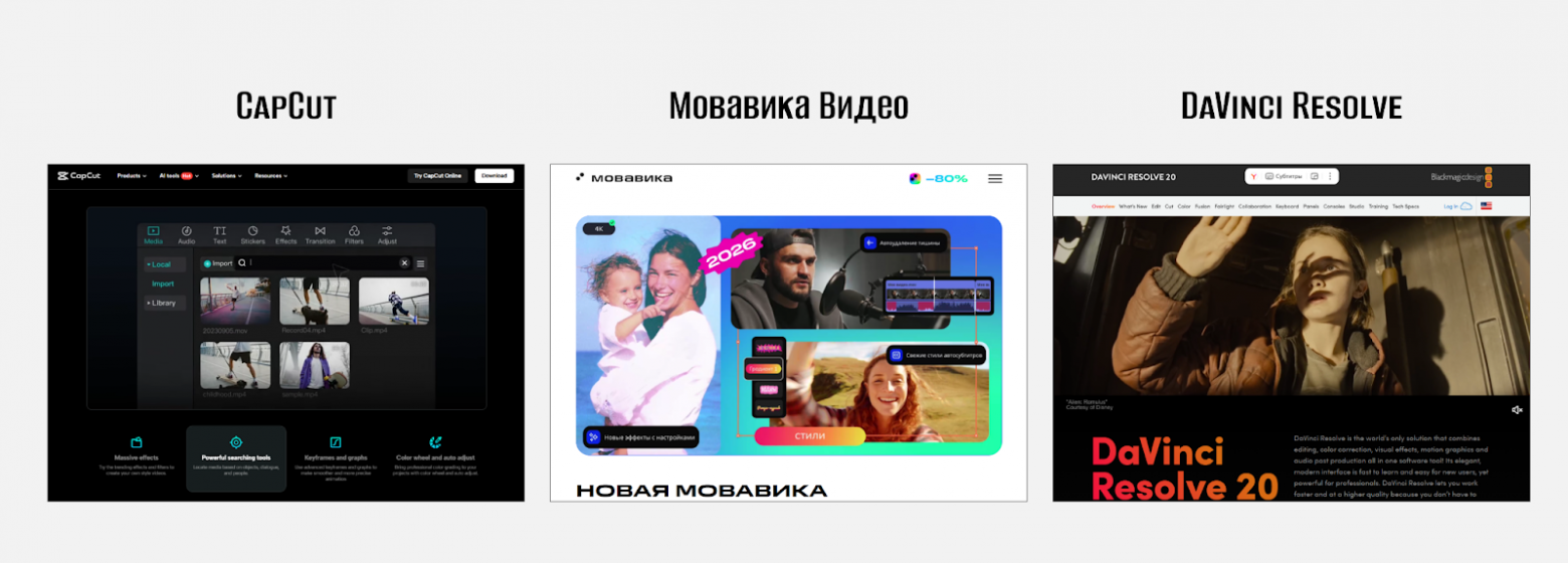 CapCut - самый удобный для соцсетей, автоматический монтаж по шаблонам, работа на смартфоне и ПК