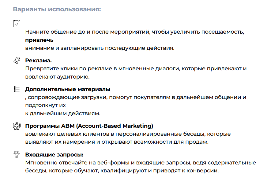 Инструмент отлично подойдет для отделов продаж и маркетинга среднего и крупного бизнеса, особенно в сферах с длинным циклом сделки (SaaS, оборудование, консалтинг). Если вы регулярно инвестируете время в создание убедительных питчей, но теряете лиды на стадии последующего взаимодействия, Conversica становится вашим закрывающим звеном.