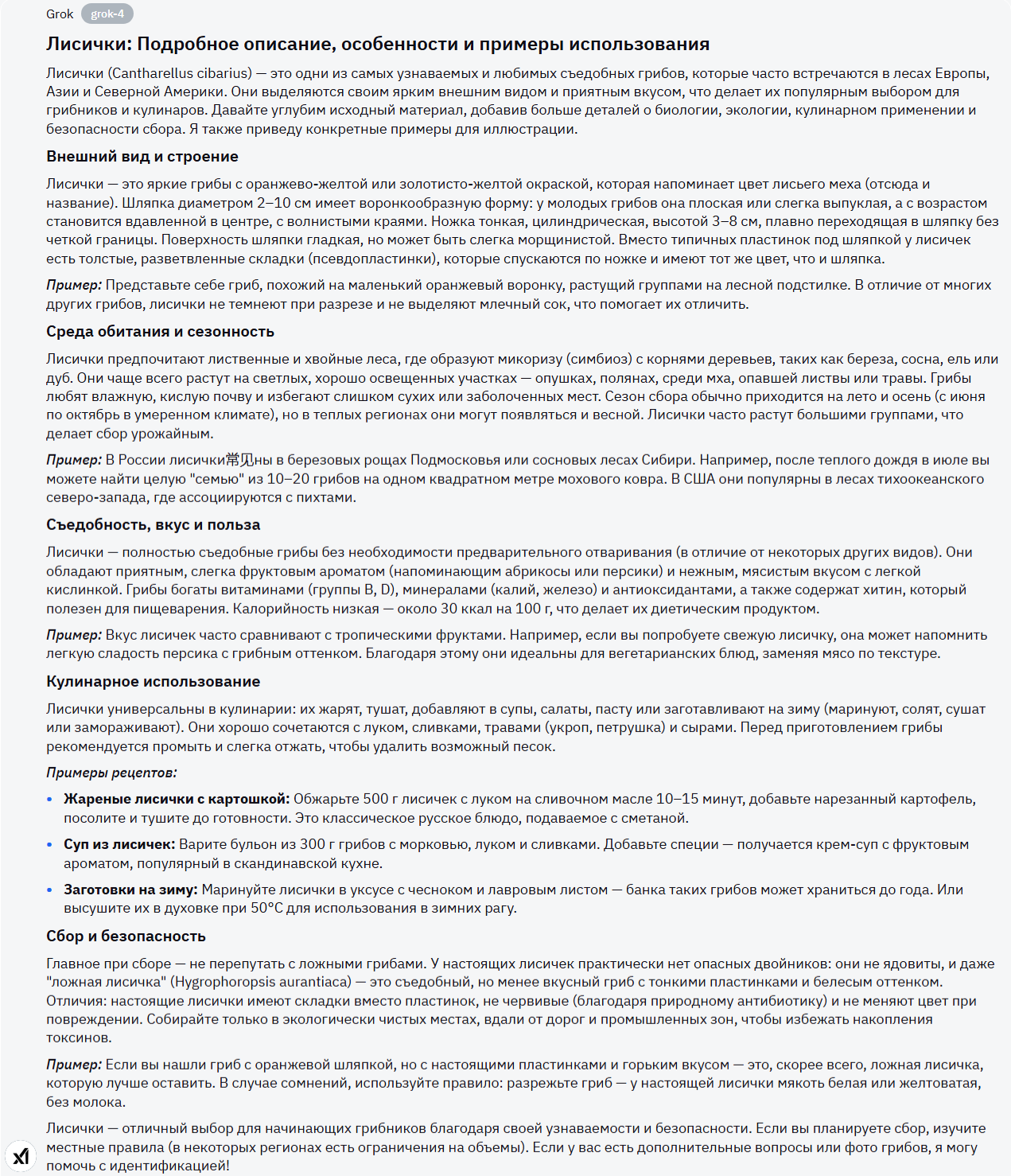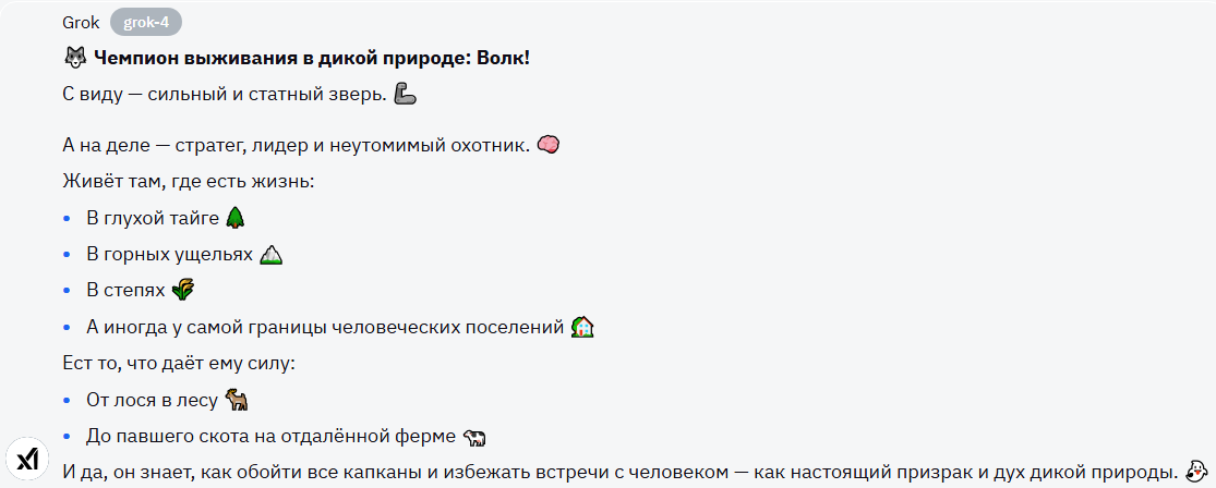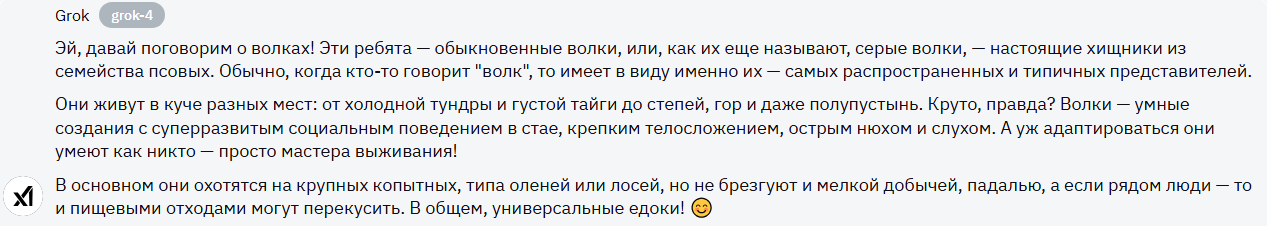 Вот тут, Grok получает мое почтение. Приятно для чтения, нет тонны маркированных списков, много полезной информации - максимальный балл для модели в этом задании.