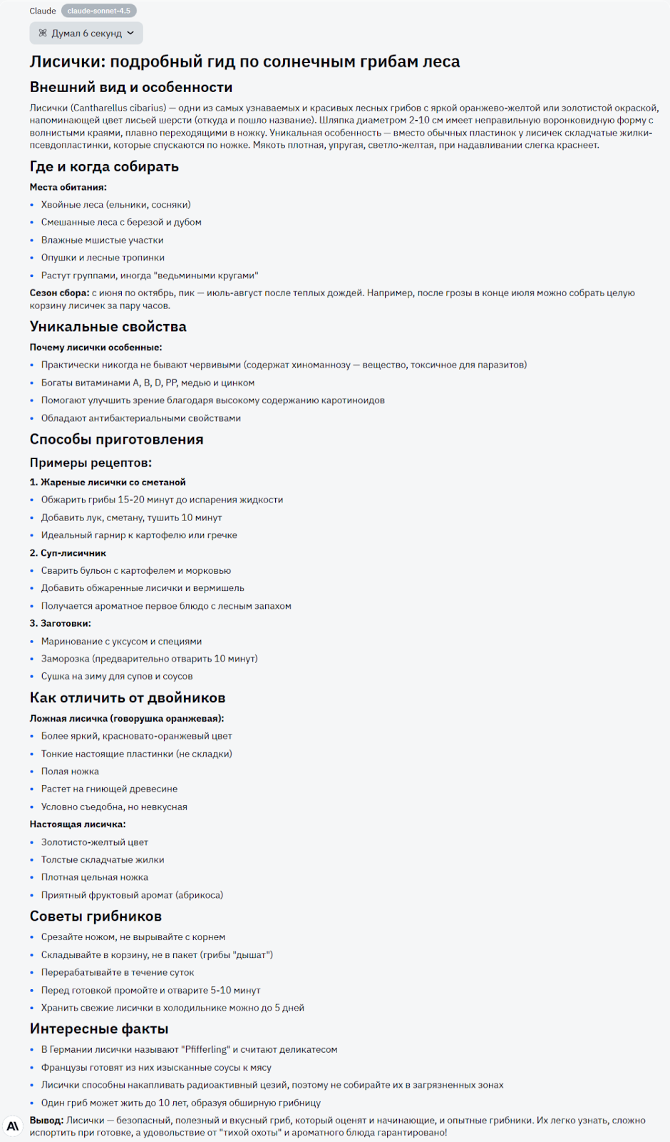 Хотя Claude тоже использует маркированные списки, здесь я все же поставлю максимальный балл. Причина в том, что банально количество полезной информации здесь больше, да и сама структура хоть и режет мне глаз, но воспринимается лучше чем вариант ChatGPT.