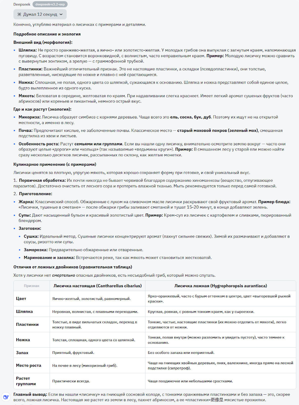Для начала, минус за формат, хоть и информации в результате дано много. Под конец ответа модели появляются слова на китайском - интересно, но не понятно.