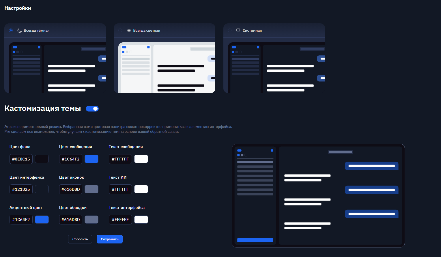 Расширили возможность экспорта и управления данными. Теперь доступен экспорт чата в формате Markdown с корректными переносами строк, копирование текста полностью или без форматирования, а также выгрузка истории транзакций в XLSX с фильтрацией по периоду.